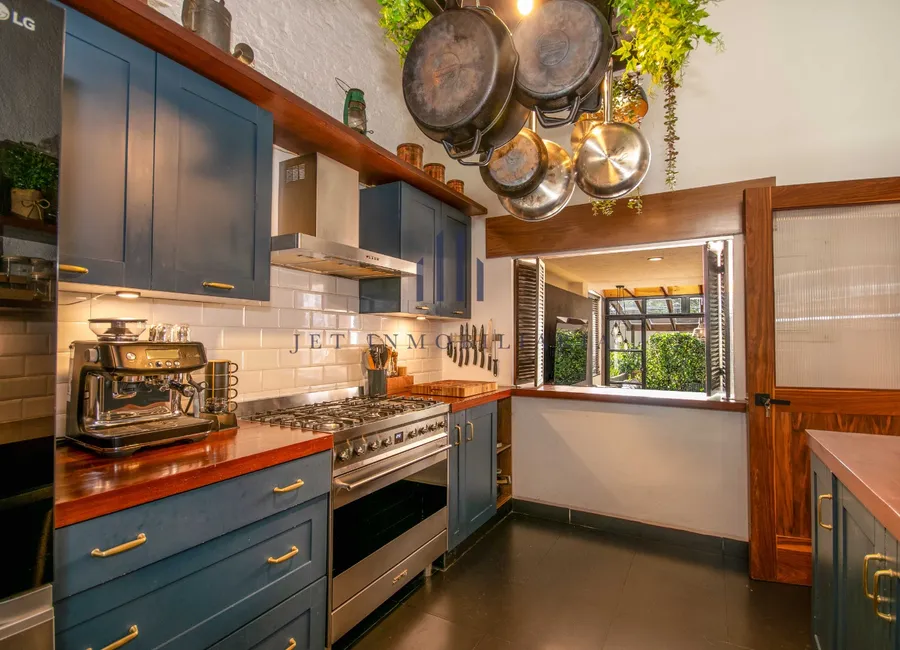 En planta baja se incorporó un nuevo family room y se redistribuyó completamente la cocina, abriéndola al interior con una ventana de comunicación. Se sumaron también un estudio para home office, renovación de baños, recámaras y vestidor.